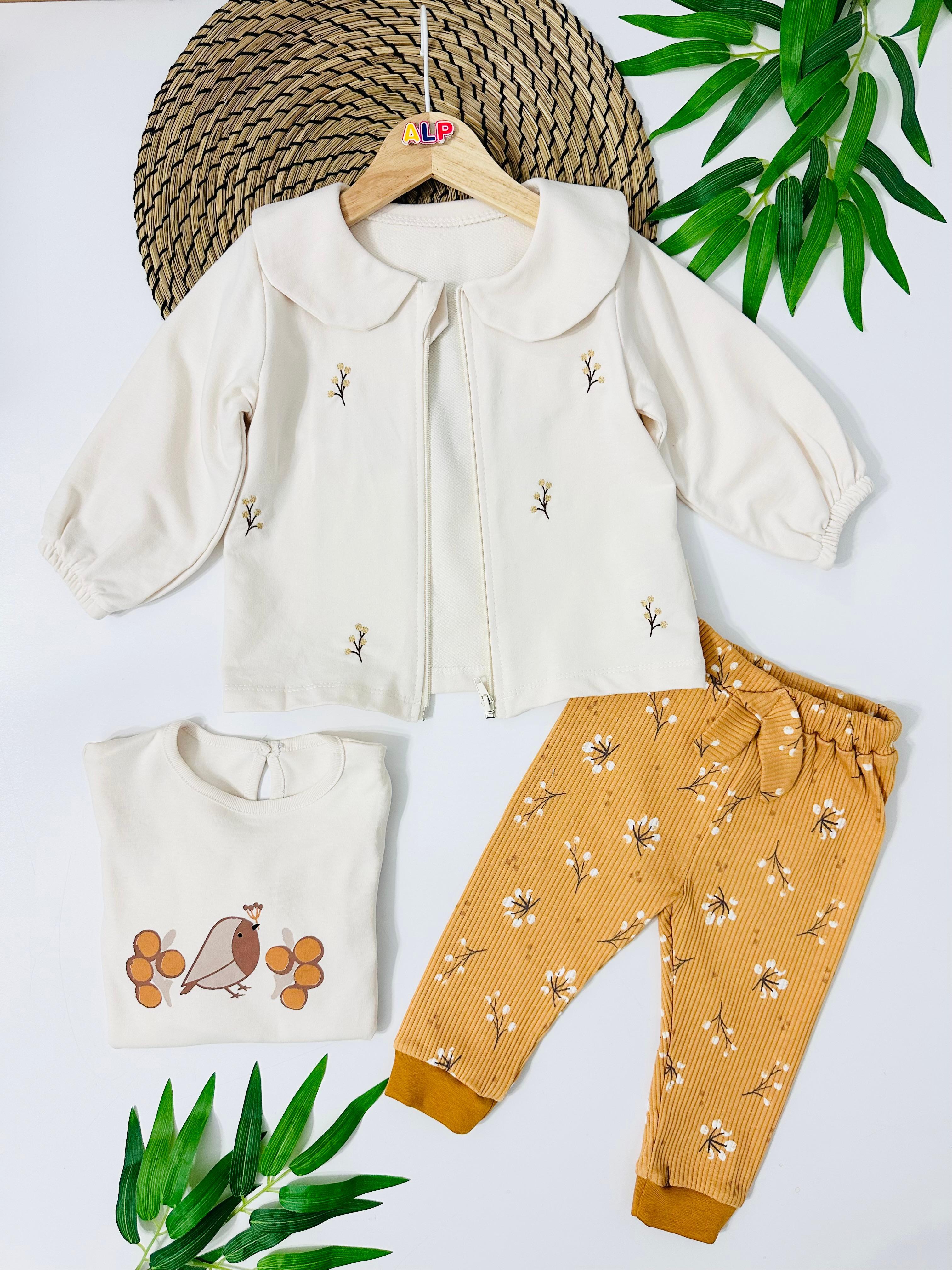 Çiçek Nakışlı Bebek Yaka Hırkalı 3'Lü Takım (ALP123767)