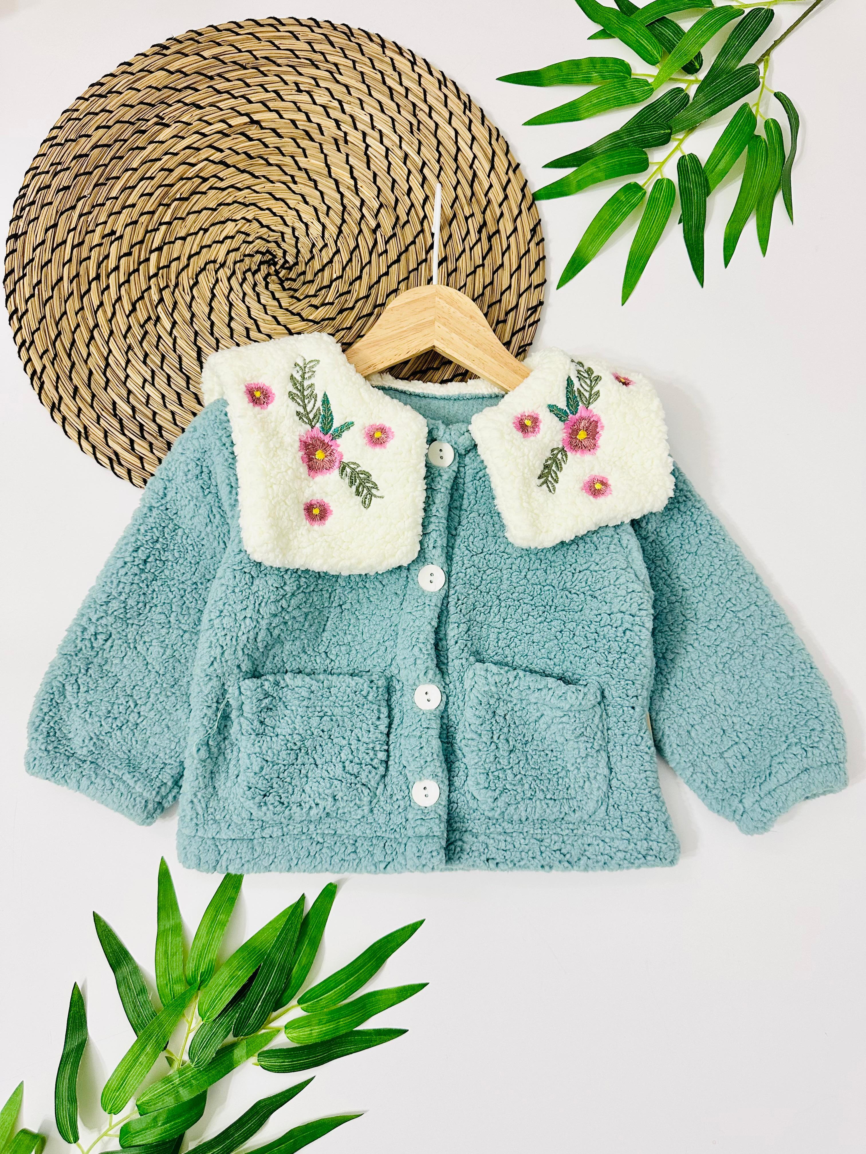 Elina Kare Yaka Çiçek İşlemeli Peluş Ceket