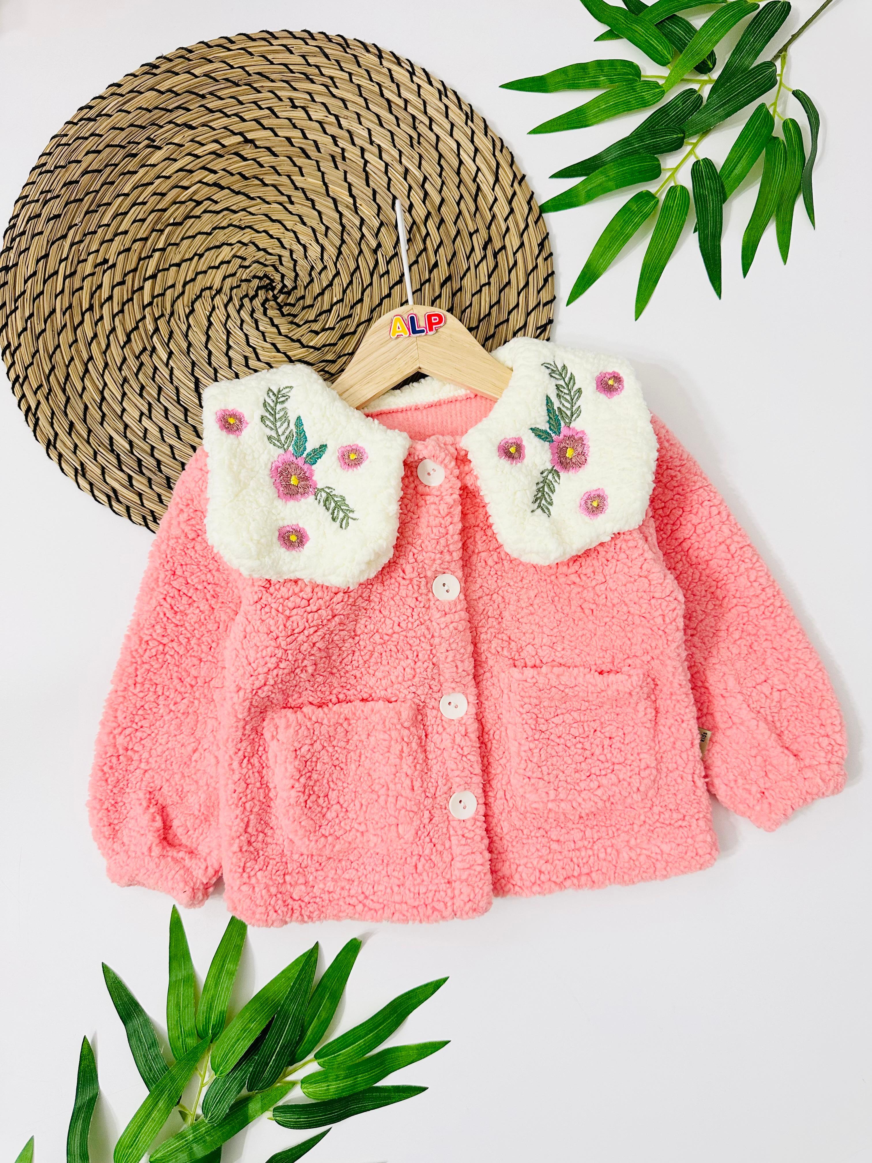 Elina Kare Yaka Çiçek İşlemeli Peluş Ceket- (ALP123772)