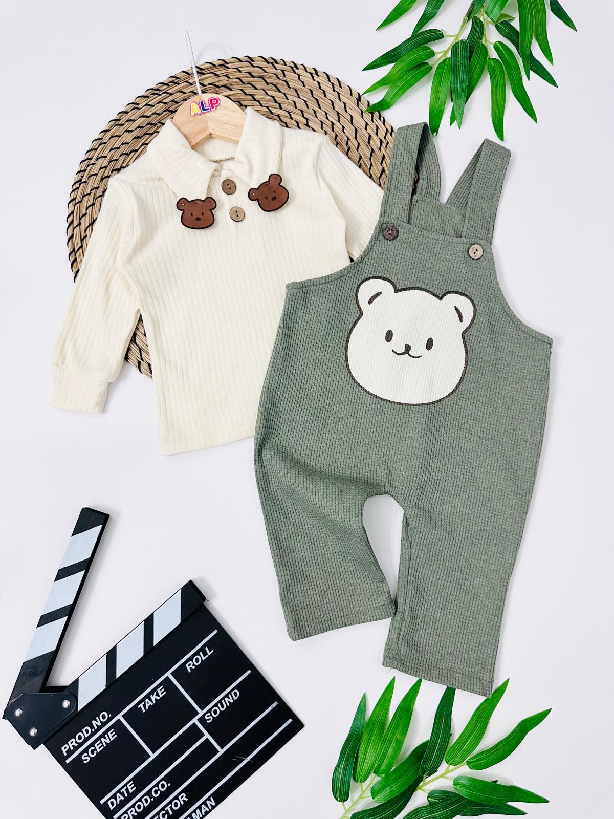 Bear Erkek Bebek Waffle Kumaş Salopet Takım (ALP123672)