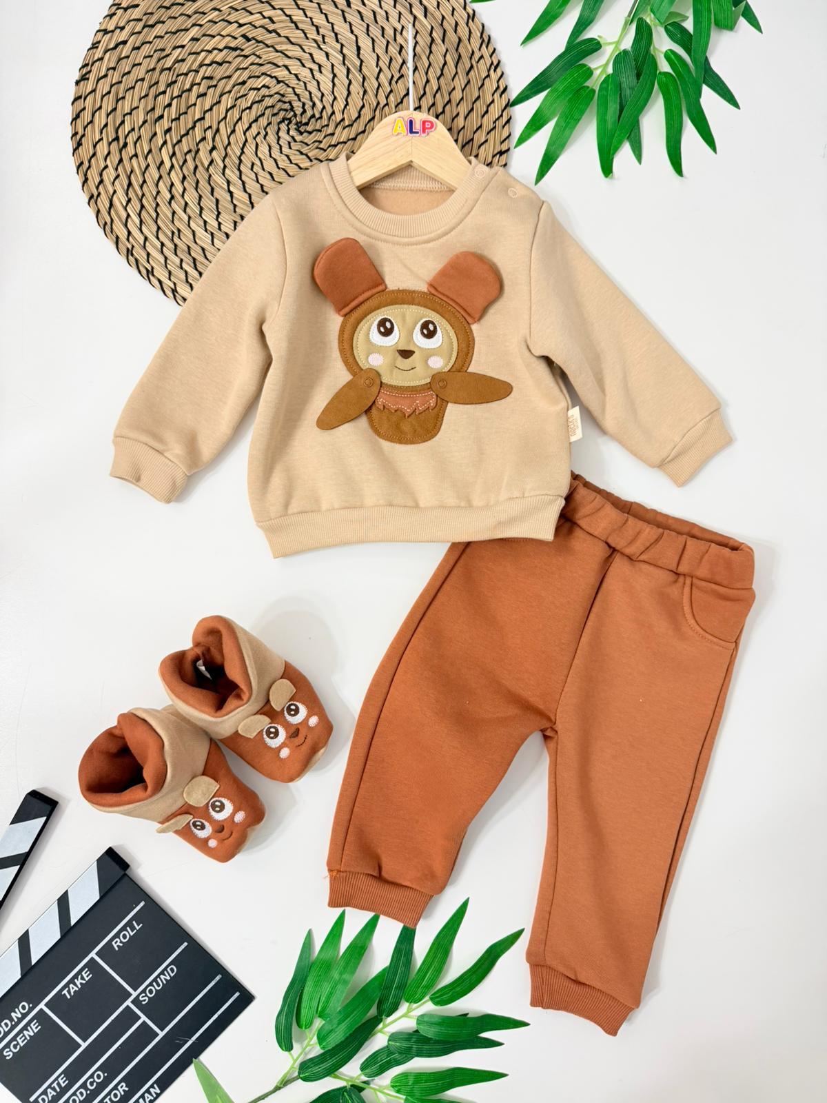 Rakun Ce-Ee Detaylı Panduflu Şardonlu Kışlık 3'Lü Takım (ALP123757)