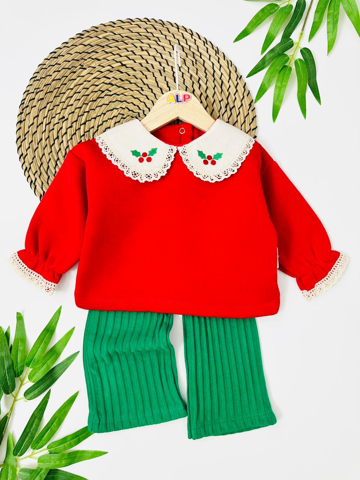 Kokina Çiçeği Nakışlı Yaka Detaylı Şardonlu Bol Paça 2'Li Takım (ALP123805)