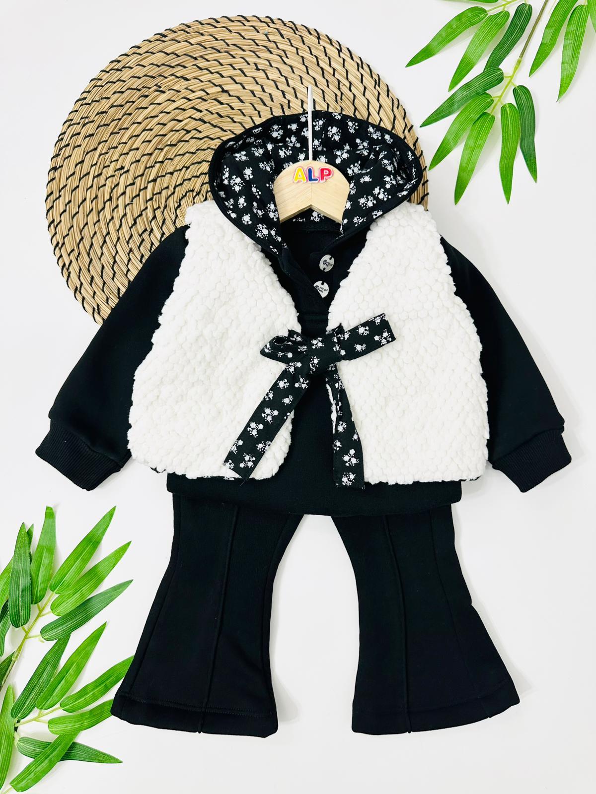Kurdale Detaylı Peluş Yelekli Kapşonlu Şardonlu 3'Lü Takım (ALP123804)