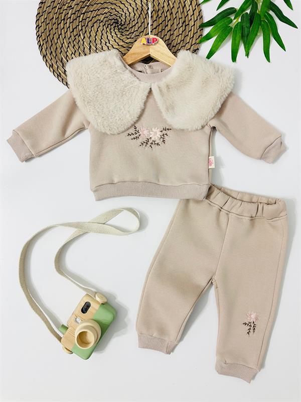 Peluş Büyük Yakalı Nakışlı Şardonlu Kışlık 2'Li Takım (ALP123766)